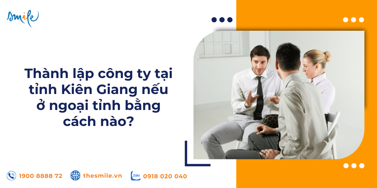 - Bạn có thể thành lập công ty tại tỉnh Kiên Giang với 3 cách: Tự thành lập, thành lập với dịch vụ địa phương hoặc liên hệ The Smile để được tư vấn.