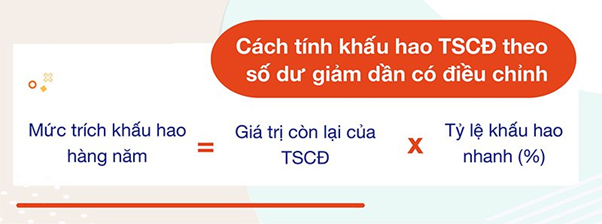 Mức chiết khấu hao hàng năm = Giá trị còn lại của TSCĐ x Tỷ lệ khấu hao nhanh (%)